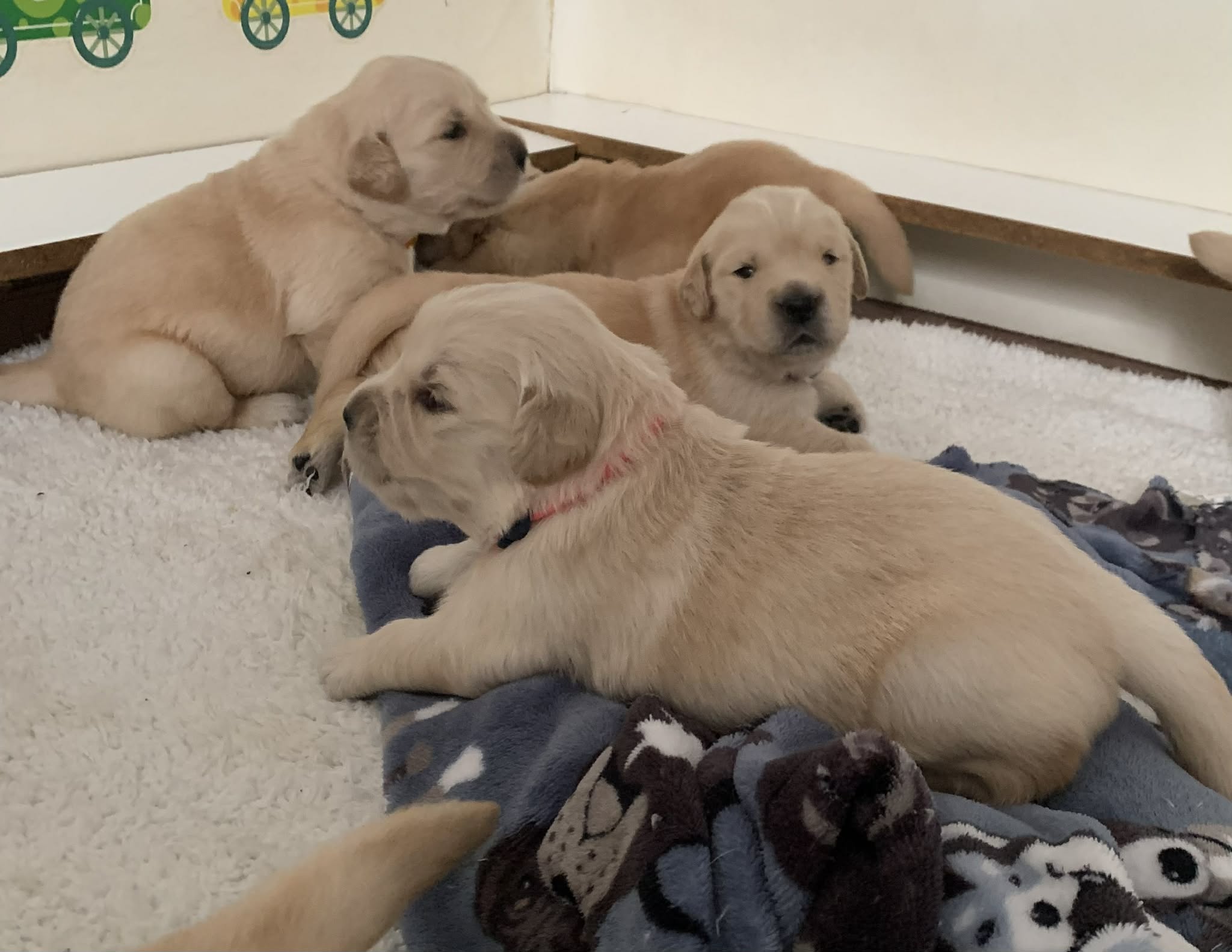 Puppies are 4 weeks old and now in the Living room pen having a blast